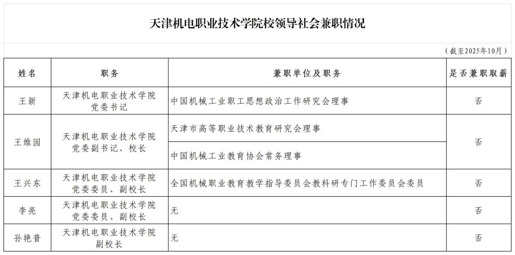 天津机电职业技术学院校领导社会兼职情况